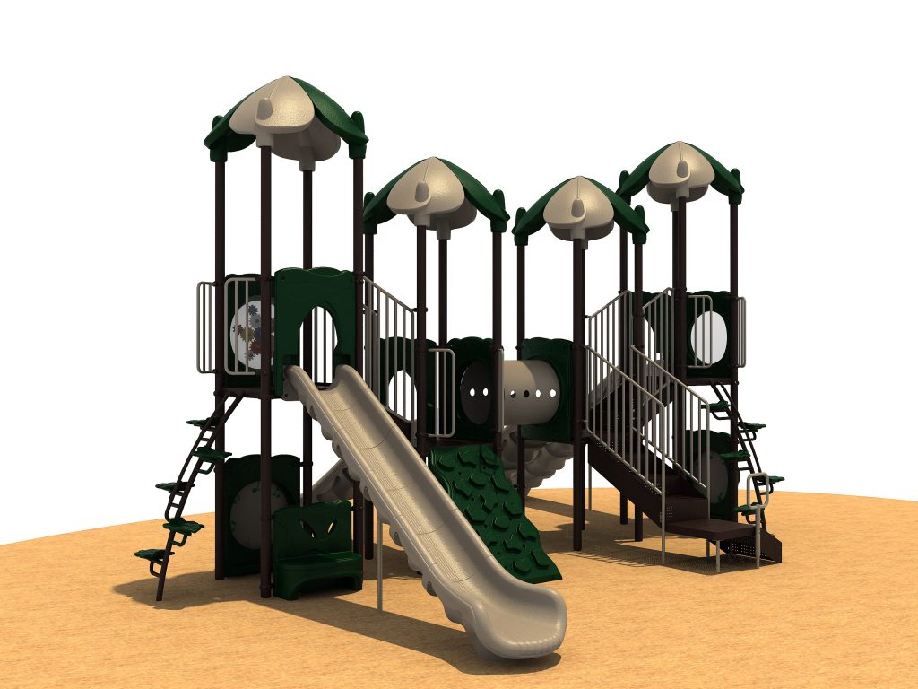 This playstructure, model number KP-16ABDDR, is age appropriate for children ages – 5 to 12. It’s got a capacity of 36-40 children, and a use zone of 40ft x 29ft.